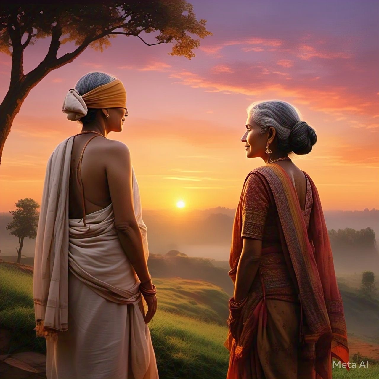 ʻಅಕ್ಕ, ನಾವೀಗ ಗುಡ್ಡದ ಶಿಖರದಲ್ಲಿದ್ದೇವೆ. ಇಲ್ಲಿ ಉದಯಿಸುವ ಸೂರ್ಯನ ಚೆಲುವನ್ನು ನೋಡಲು ತುಂಬಾ ಚೆಂದವಾಗಿರತ್ತದೆ. ಆದರೆ ಹುಲ್ಲಿನ ಮೇಲೆ ತುಂಬ ಇಬ್ಬನಿ ಬಿದ್ದಿದೆ. ಕುಳಿತರೆ ನಿನಗೆ ಶೀತವಾದೀತೇನೋ?ʼ. ಕುಂತಿಯ ಸಹಜ ಕಾಳಜಿ ಗಾಂಧಾರಿಯ ಕಪ್ಪು ಬಟ್ಟೆಯನ್ನು ತೋಯಿಸಿತು.  ಕುಂತಿ ಹುಲ್ಲಿನ ಇಬ್ಬನಿಯನ್ನು ಝಾಡಿಸಿ, ಪರ್ಣಕುಟಿಯಿಂದ ತಂದಿದ್ದ ಅಂಗವಸ್ರ್ತವನ್ನು ಹಾಸಿ ಗಾಂಧಾರಿಯನ್ನು ಕೂರಿಸಿದಳು.