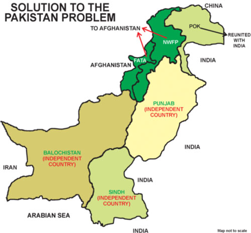 ಪಾಕಿಸ್ತಾನ ವಿಭಜನೆಯ ವಿಭಿನ್ನ ಪ್ರಸ್ತಾಪಗಳು ಮುಂದಿವೆ. ರಾಲ್ಫ್ ಪೀಟರ್ಸ್ ಎಂಬ ತಜ್ಞ `ಬ್ಲಡ್ ಬಾರ್ಡರ್ಸ್; ಹೌ ಎ ಬೆಟರ್ ಮಿಡ್ಲ್ಈಸ್ಟ್ ವುಡ್ ಲುಕ್’ ಅಧ್ಯಯನ ಗ್ರಂಥವನ್ನೇ ಬರೆದಿದ್ದಾರೆ. ಯುರೋಪ್ನಲ್ಲಿ ನೆಲೆಸಿರುವ ಪಾಕ್ ಮೂಲದ ಪತ್ರಕರ್ತ ಸಯ್ಯದ್ ಜಮಾಲುದ್ದೀನ್, ಉಗ್ರವಾದದ ಮೂಲೋತ್ಪಾಟನೆಗೆ ಪಾಕ್ ವಿಭಜನೆ ಅನಿವಾರ್ಯ ಎಂದು ಬರೆದಿದ್ದಾರೆ.